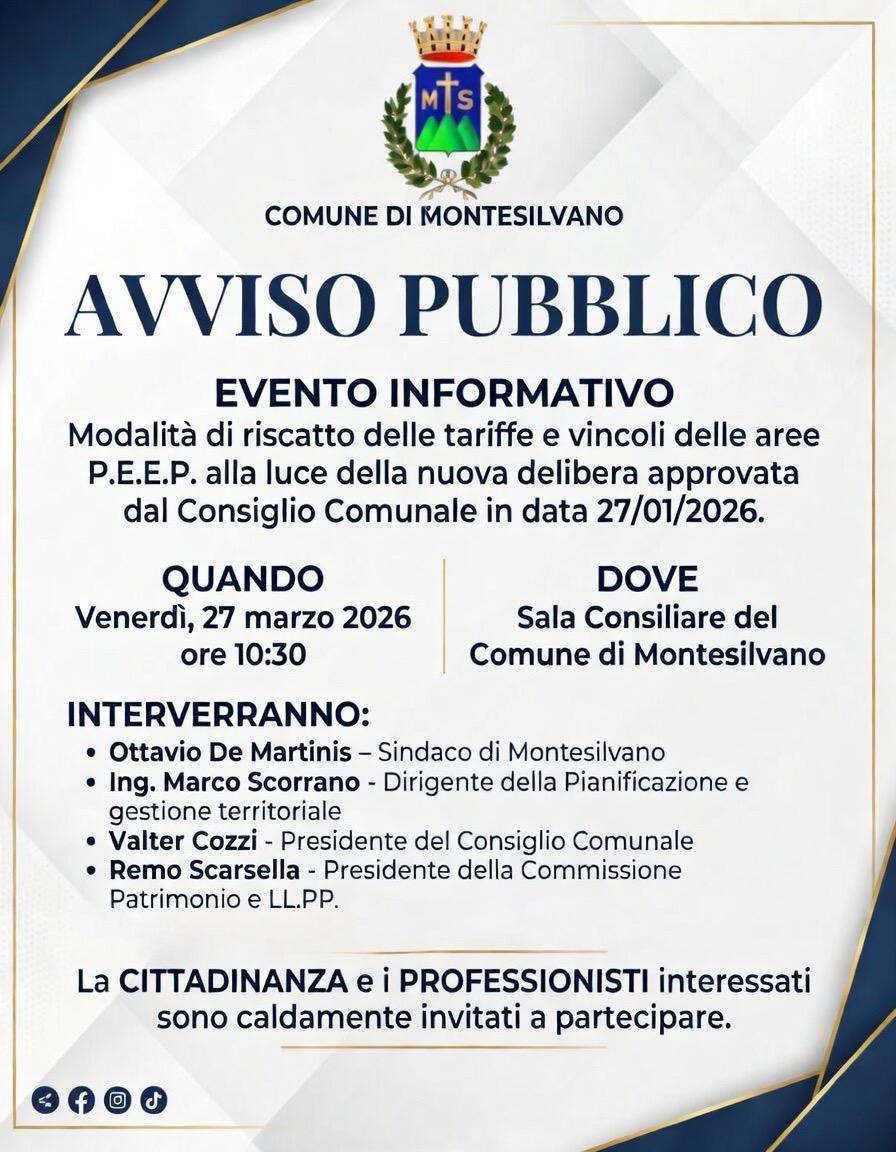 L’incontro è aperto a proprietari di immobili nelle zone P.E.E.P., professionisti e cittadinanza interessata. Partecipazione libera e gratuita.