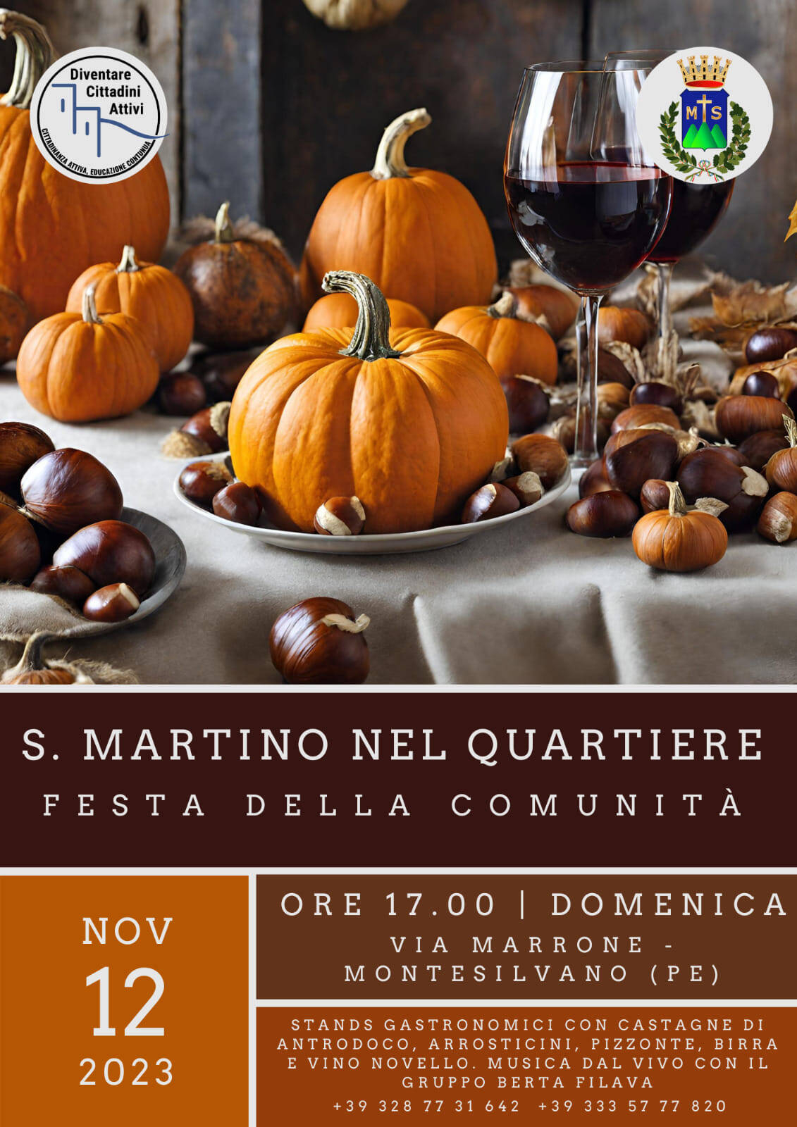 Domenica 12 novembre dalle ore 17, prende il via la prima edizione di “S. Martino nel Quartiere” - una Festa della comunità di via Marrone, organizzata dall’associazione “Diventare cittadini attivi”. Oltre a numerosi stand gastronomici, la serata sarà allietata da coinvolgente musica dal vivo.